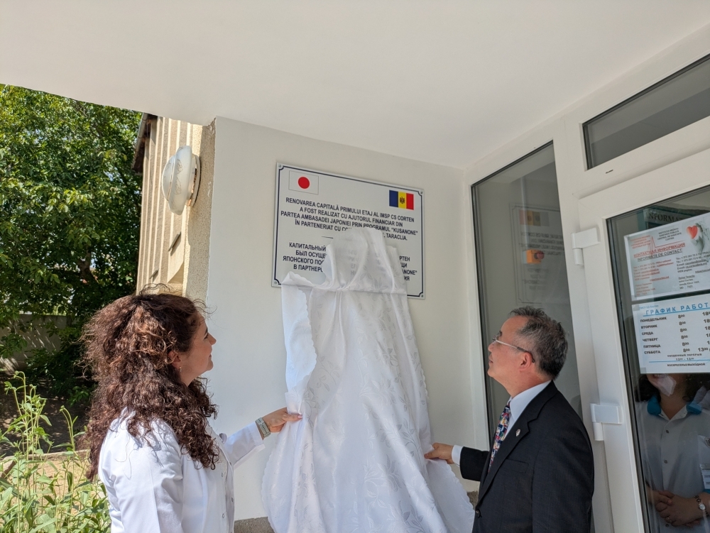 On August 22, the Handover Ceremony of the the Project for the Improvement of Corten Health Center funded through Grant Assistance for Grassroots Human Security Projects Scheme 'Kusanone', took place. The ceremony was attended by H.E. Mr. YAMADA Yoichiro, Ambassador of Japan, Mrs. Diana Ceavdari, Director of Corten Health Center, Mr. Tanurcov stepan, experts from the Taracria District Council, and directors of other health centers in Taraclia district.