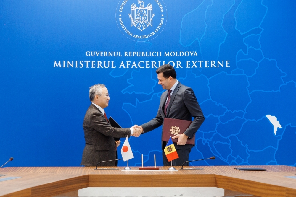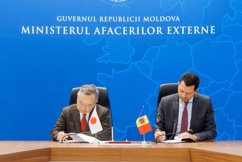 On 4 December, Ambassador Yoichiro Yamada and State Secretary of the Ministry of Foreign Affairs, Mr. Serghei Mihov signed the Exchange of Note at the Ministry of Foreign Affairs of Moldova on the grant project for the Improvement of Television Program Production Equipment at Teleradio-Moldova (total amount: 1.92 billion yen).